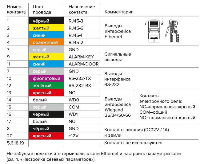 Распиновка клеммы контактов rusguar R20- Face